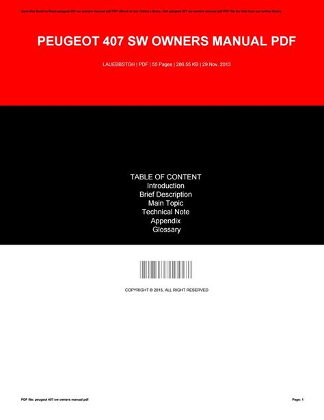 Read USER MANUAL PEUGEOT 407 SW Audio CD ManyBooks
